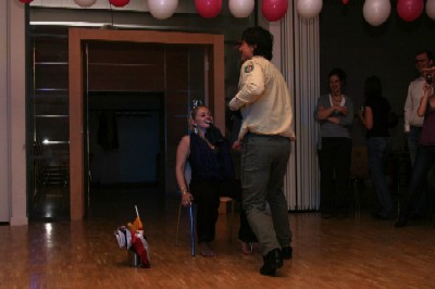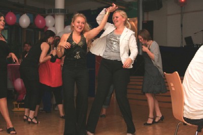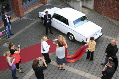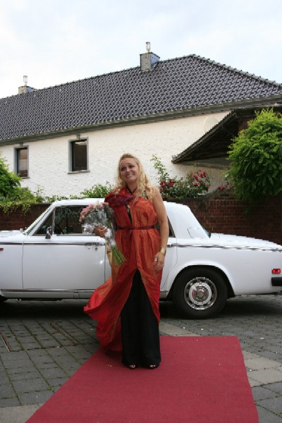 Selbst Schleppe und Roter Teppich fehlten nicht, ihre Freundinnen haben an alles gedacht. Die Überraschungsparty ist gelungen. |