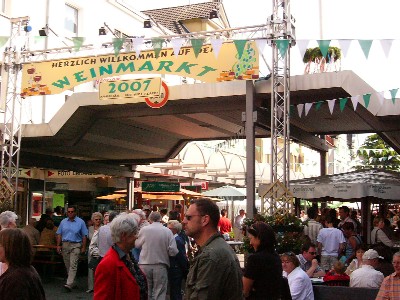 4.Mai 2007,Offizielle Eröffnung des 25. Weinfestes durch Bürgermeisterin Uta Heinrich, Bernd Kaczor (1.Vorsitzender der Werbegemeinschaft) sowie Weinkönigin Raika Fromm |